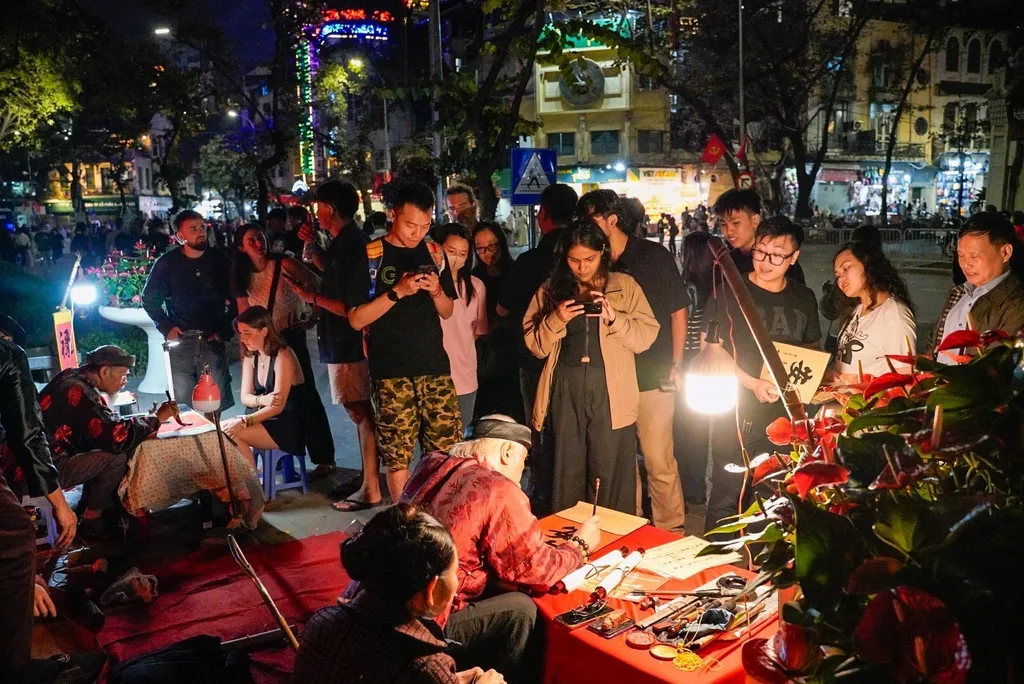 | From early evening, the area surrounding the Hoàn Kiếm lake and adjacent streets became increasingly lively. |