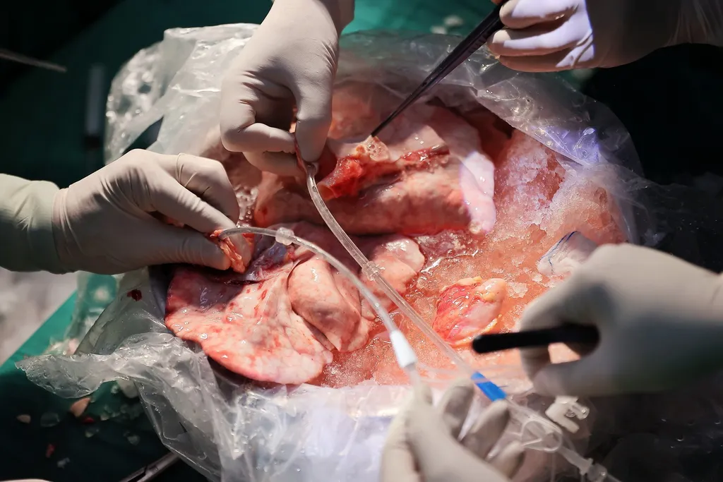 | The donor lungs are immediately transferred to the operating theatre for transplantation. |