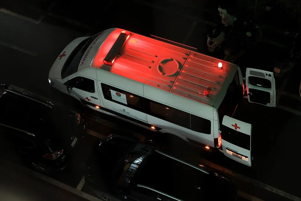 | An ambulance transports the donor lungs to the hospital at midnight on the seventh day of the Lunar New Year. |