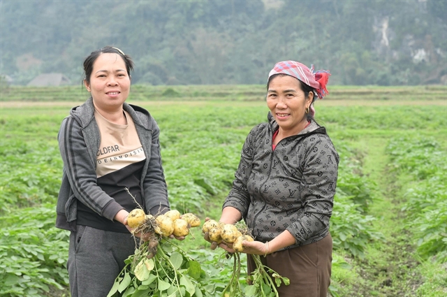 | Two women in Chút Village harvest winter potatoes. — VNA/VNS Photo |