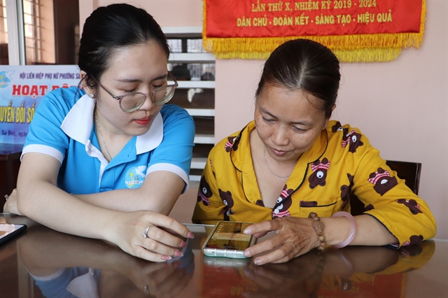 | A woman is guided to use the model and accessing "Digital safe house" information on various platforms in Sa Đéc Ward. — VNA/VNS Photo Hồng Nhung |