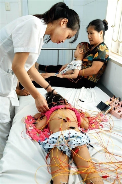 | An autistic child receives electroacupuncture treatment at a hospital in Hà Nội – a method reported to show effectiveness in more than 60 per cent of cases. — VNA/VNS Photo |