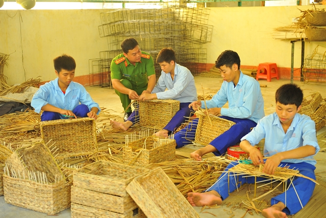 | Students learn basket weaving at the rehabilitation school. — VNA/VNS Photo |