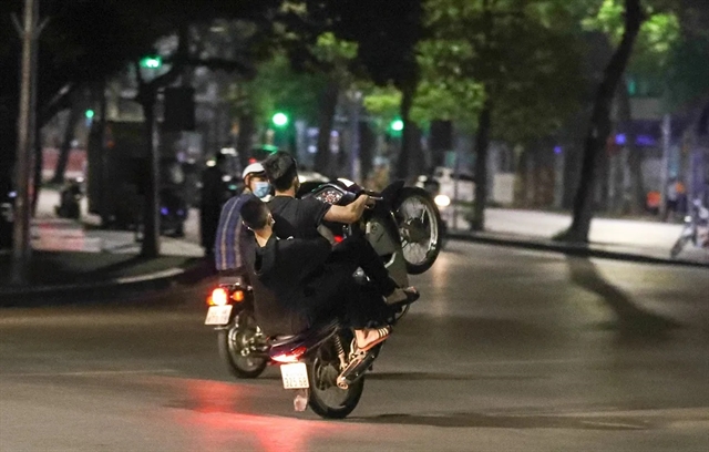 | Two teenagers performing a wheelie while street racing in Hà Nội. — Photo kinhtedothi.vn |