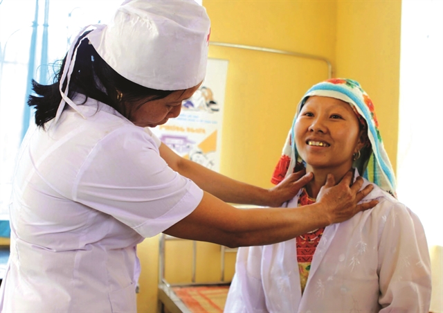 | TAKING ON DISEASE: A medical worker examines and diagnoses a goitre in an ethnic minority woman in Ba Bể District, Thái Nguyên Province. Over the years, Việt Nam’s preventive medicine sector has achieved encouraging results, successfully controlling many dangerous emerging diseases. VNA/VNS Photo Hữu Oai |