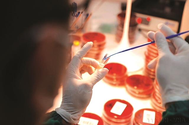 | CAREFUL: A technician conducts bacterial and fungal identification tests at the National Lung Hospital. VNA/VNS Photo Minh Quyết |