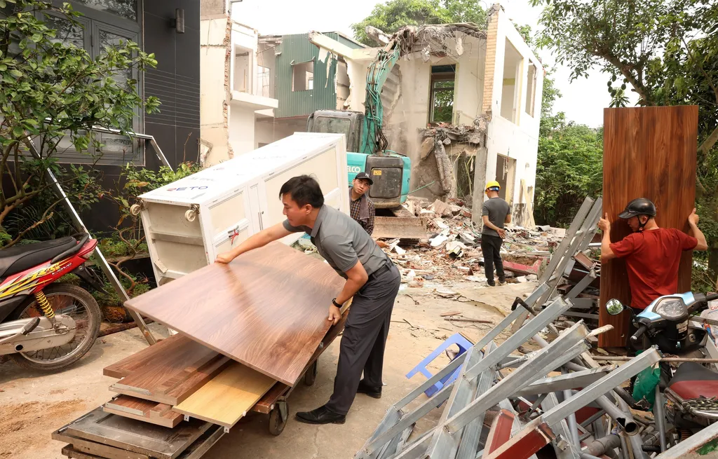 The first households in alley 695 Bạch Đằng Street, Hồng Hà Ward, have begun relocating belongings and handing over the cleared land to contractor Trung Chính, with completion expected before April 20. VNA/VNS Photos