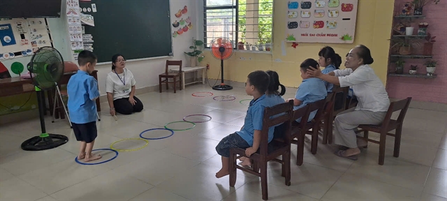 | Children with disabilities participate in an exercise game at the Đà Nẵng Inclusive Education Resource Centre. VNS Photo Công Thành |