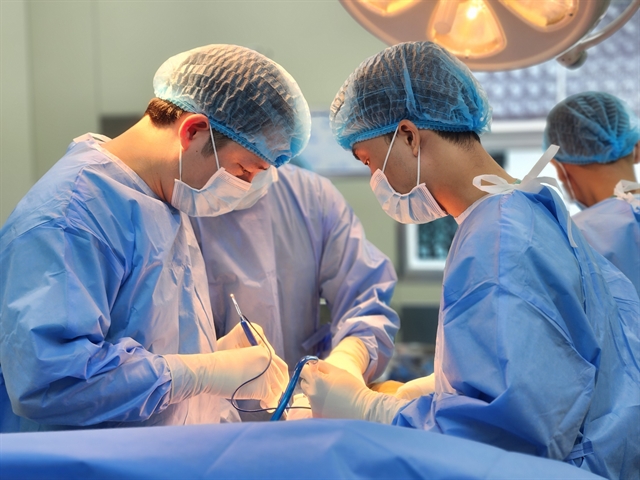 | Nguyễn Nguyễn Thái Bảo, deputy director of the Trauma and Orthopaedics – Plastic Surgery Centre (left) conducts a surgery. — VNA/VNS Photo Mai Trang |