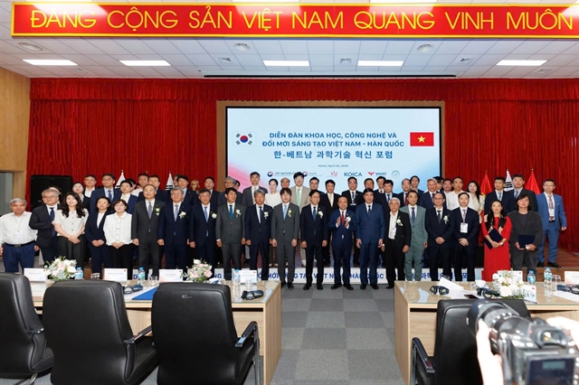 | Participants pose for a group photo at the Vietnam-Korea Science, Technology, and Innovation Forum in Hà Nội on April 24. Photos courtesy of ICISE |