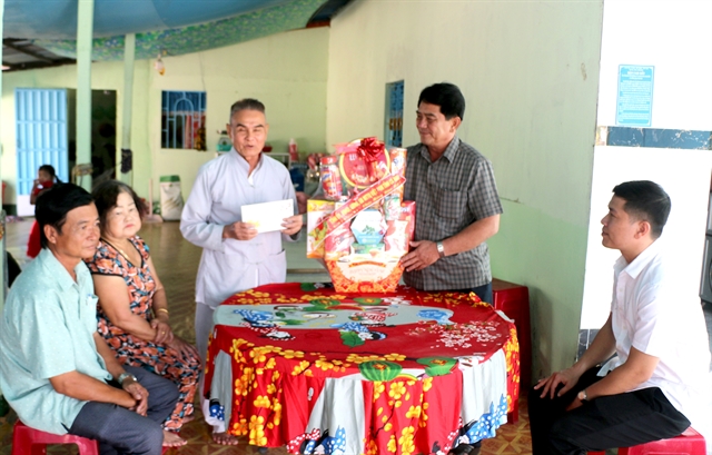 | Lê Hoàng Phi, Chairman of the Ninh Thạnh Lợi Commune People’s Committee, visits and gives gifts to Nguyễn Phương Đông, a policy beneficiary in Xẻo Gừa Hamlet, on the occasion of Tết 2026 (the Lunar New Year of the Horse) festival. — VNA/VNS Photo Tuấn Kiệt |