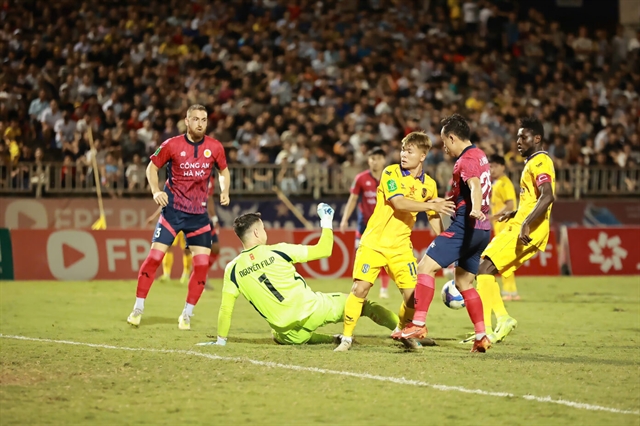 | Hà Nội Police and Sông Lam Nghệ An players (in yellow) in action in the final of the National Cup 2024-25. This year tournament, under new title sponsor LPBank Securities will be kicked off on September 12. Photo courtesy of VPF |