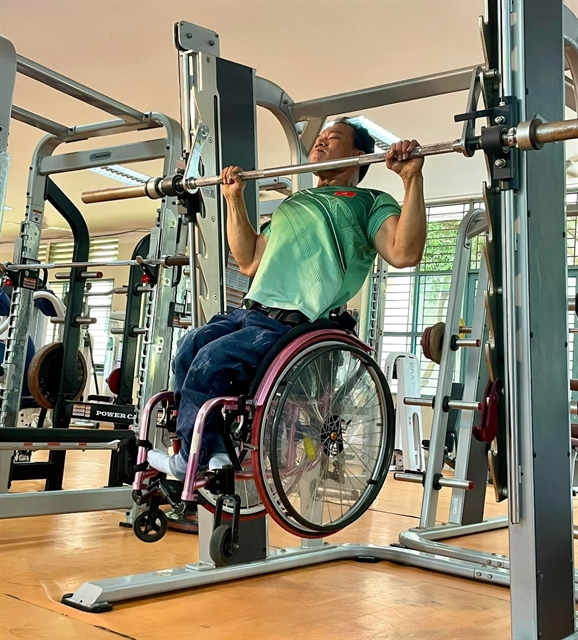 | Powerlifter Lê Văn Công trains hard for upcoming events. Photo courtesy of Công |