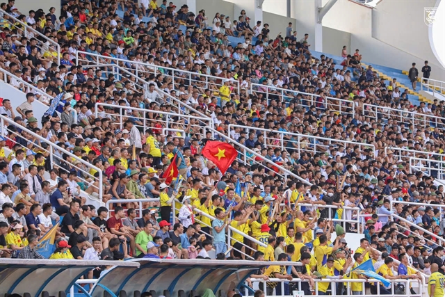 | A large crowd of fans attends the Việt Yên Stadium in Bắc Ninh Province to cheer for the Bắc Ninh FC Football Club. |
