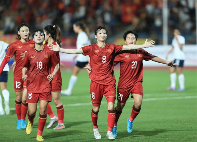 | Trần Thị Thùy Trang (No 8) is seen in the Vietnamese national women’s football team. Photo danviet.vn |