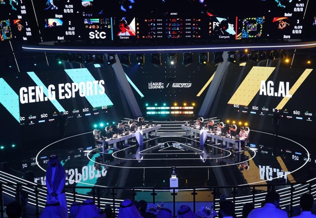 | Players compete in the grand final of the League of Legends competition at the 2025 Esports World Cup in Riyadh, Saudi Arabia. — XINUA/VNA Photo |