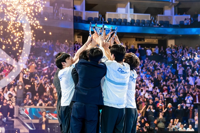 | KRX winning the 2022 League of Legends World Championship in Chase Centre, San Francisco, US. Photo courtesy of KRX |