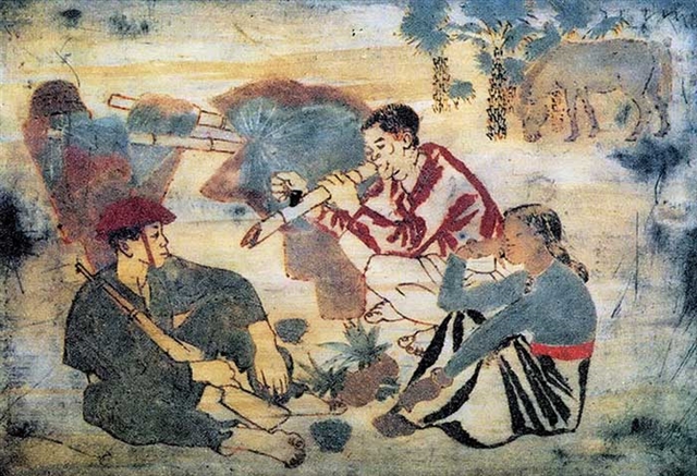 Lacquer painting Nghỉ Chân Bên Đồi (Resting by the Hill) by painter Tô Ngọc Vân (1906-1954), one of the pioneering “Four Masters” of Vietnamese modern art. It was painted in 1948 when he joined the anti-French resistance war. |