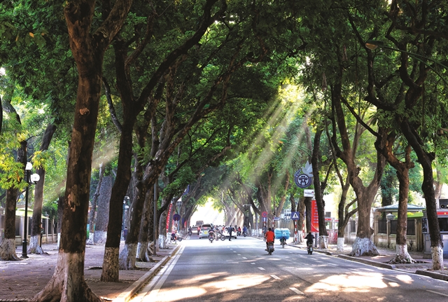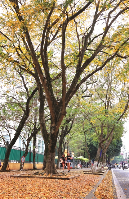 | FALL COLOUR: Hoàng Hoa Thám Street blanketed with leaves is a familiar sign of Hà Nội autumn. |