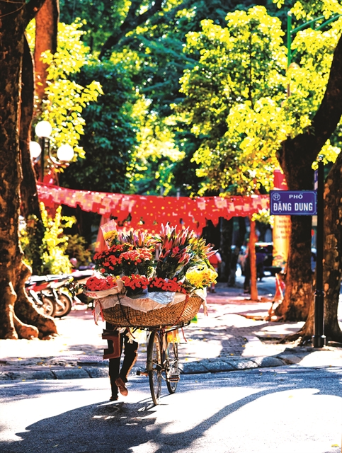 | COLOURFUL: A street vendor selling flowers at Đặng Dung Street. |