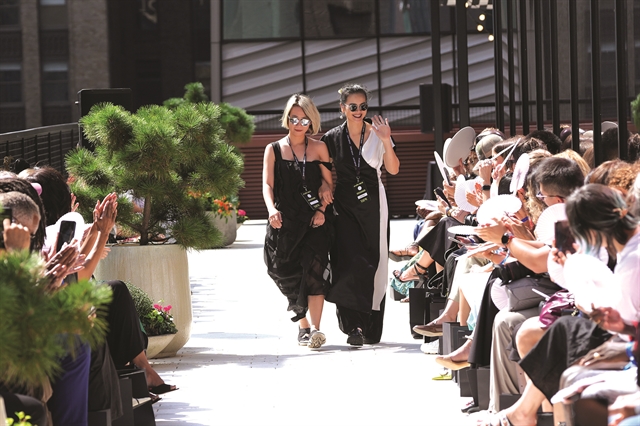 Phạm Ngọc Anh (right), founder of La Pham, and brand manager Kim Lê Hằng at the New York Fashion Show. Photo courtesy of La Pham |