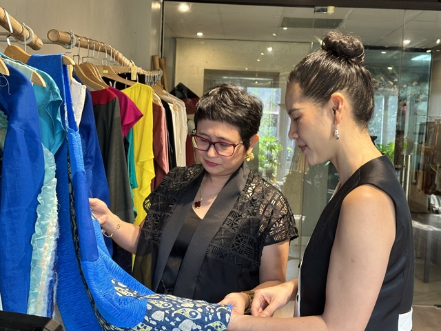 Designer Phạm Ngọc Anh (right) consulting a customer at her showroom in Hà Nội. VNS Photo Lê Hương |