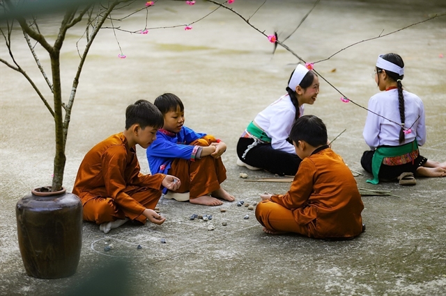 | Mường women play a traditional game during Lunar New Year celebrations. — VNA/VNS Photo |
