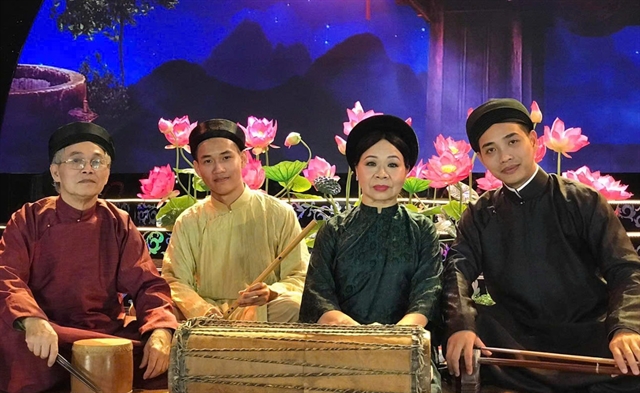 | Đoàn Thanh Bình (second right) and musicians participate in a recent show on VTV. |