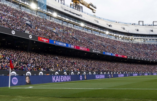 | Kai Đinh’s name and image appear at Camp Nou Stadium in March. — Photo thegioidienanh.vn |