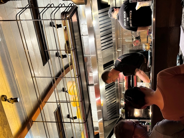 | With guests chatting across tables, the atmosphere feels more like a dinner party than a typical restaurant. |