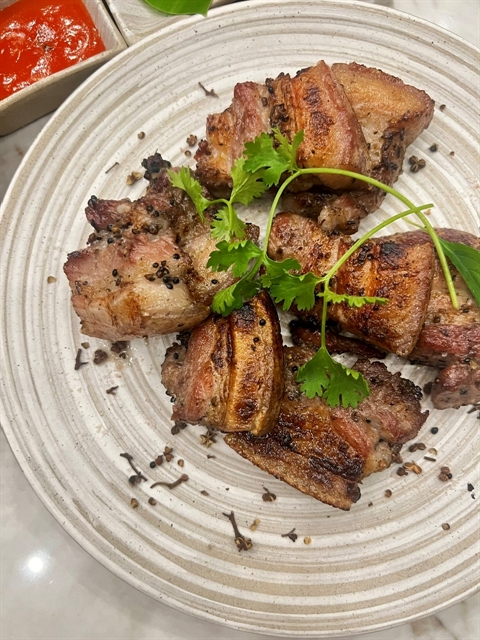 Black pork seasoned with wild 'mắc khén' pepper. VNS Photo Thúy Hằng |