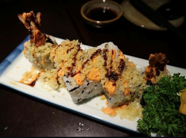The next highlight came unexpectedly in the form of a sushi roll (VNĐ169,000). The unagi was generously layered, rich and well-balanced, while a crisp topping added textural contrast. Finished with a lightly spicy, mayo-based sauce, the roll carried just enough heat and creaminess to complement the natural sweetness of the eel.