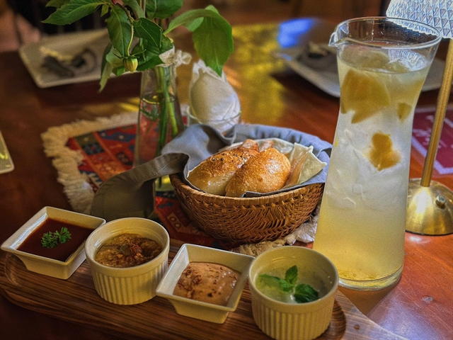 The curved wood, dim orange lighting and centred table drapes drag me further west, but the vibrant colours and geometric patterns throw me off. The vibe is calm; people drink wine while unfamiliar music plays in the background. This isn’t the Mediterranean, in fact we haven’t even left the continent. It’s a little slice of Armenia. This is Armo-House, Hà Nội’s first, and to the best of my knowledge, only Armenian restaurant.