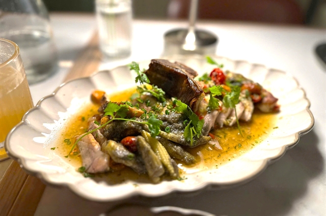 The bone-in pork loin is all tenderness, with charred baby corn bringing bite and the bone offering up those satisfying scraps worth tugging at. Jeow som does a toned-down nod to the Laotian national condiment, enough heat to wake you up, not enough to punish you.