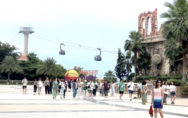 | Tourists visit and experience the Hòn Thơm cable car in Phú Quốc. VNA/VNS Photo |
